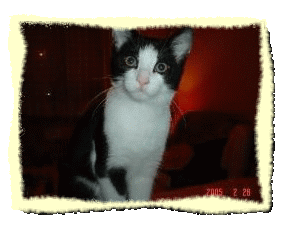 niedliche schwarz-weiße Kater heißt Grisu. Wir haben ihn als Spielgefährten